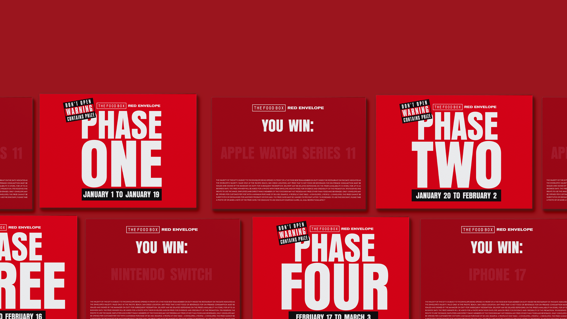 Don't forget that ALL RED ENVELOPES have a prize and if the envelope is not opened in the restaurant, it’s invalid.